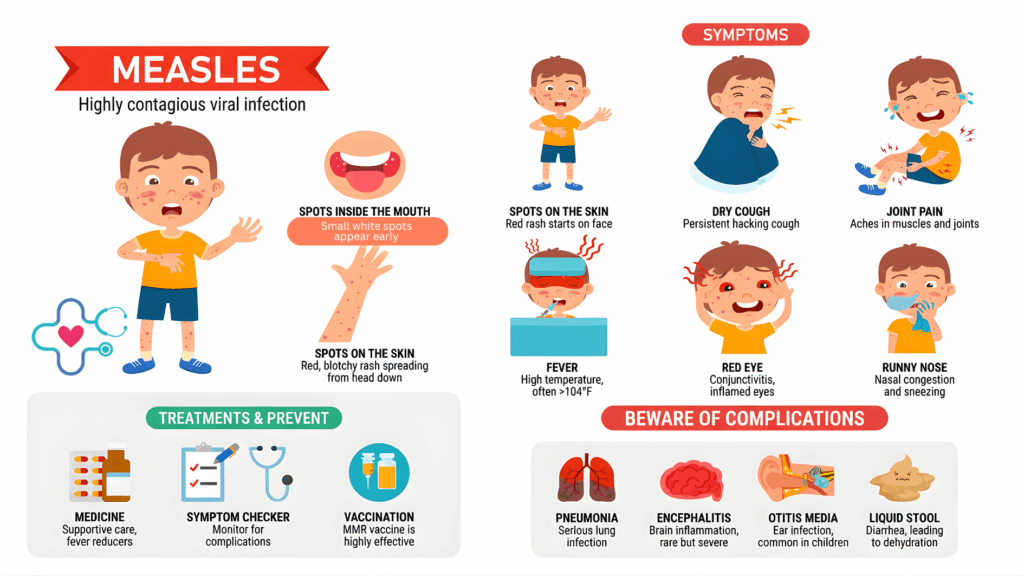 This guide is designed to give parents clear, practical information so you can recognize symptoms early, understand how measles spreads, and feel confident about next steps if your child becomes ill.