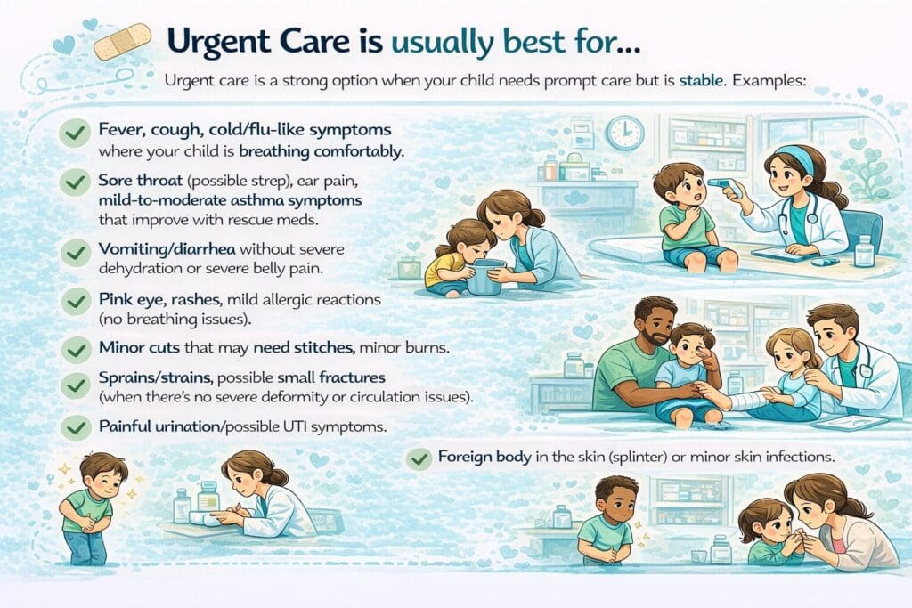 Urgent care is a strong option when your child needs prompt care but is stable.
